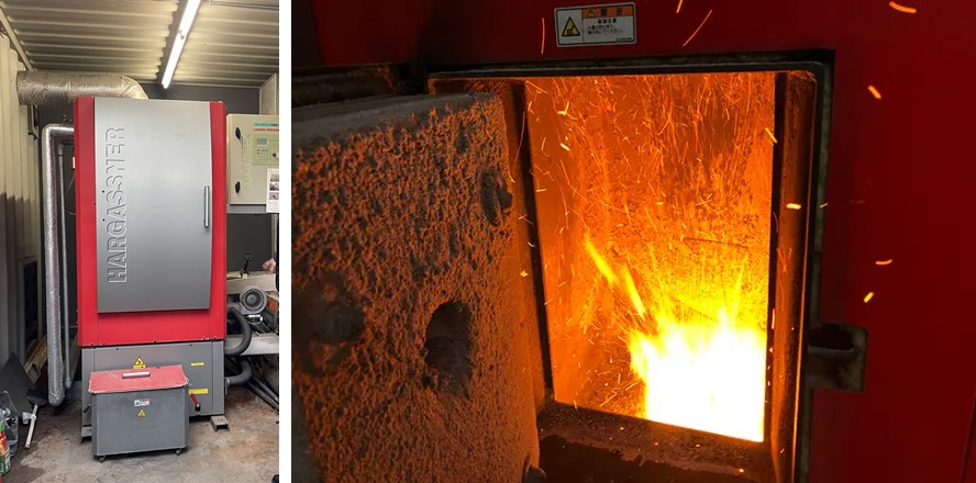 乾いたチップは木質バイオマスとして燃焼させ、発生したエネルギーは、スポーツセンターへの温熱供給に使用しています。